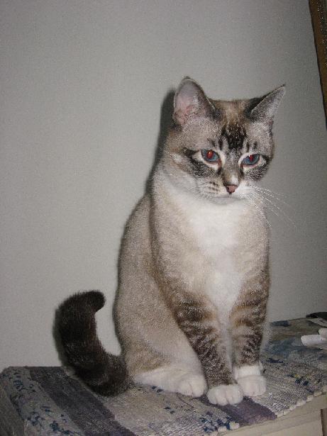 Lynx point is a siamese point coloration in which the coat features distinct stripes, mostly around the legs, eyes, cheeks and tails.